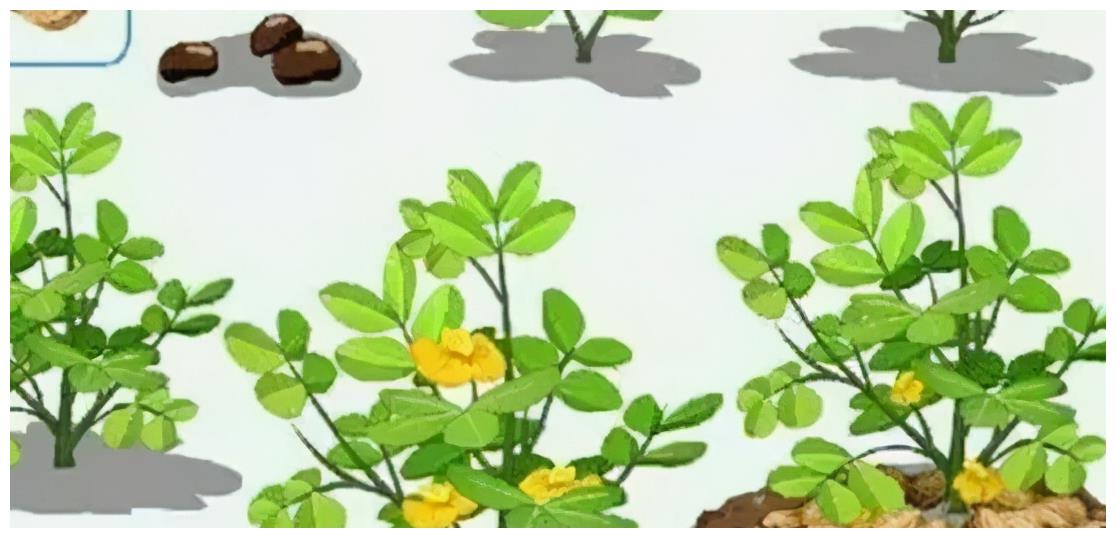 这一时期生长特点是大批果针入土形成幼果或秕果,营养生长达到最盛期,水肥消耗量耗水量达到最盛。